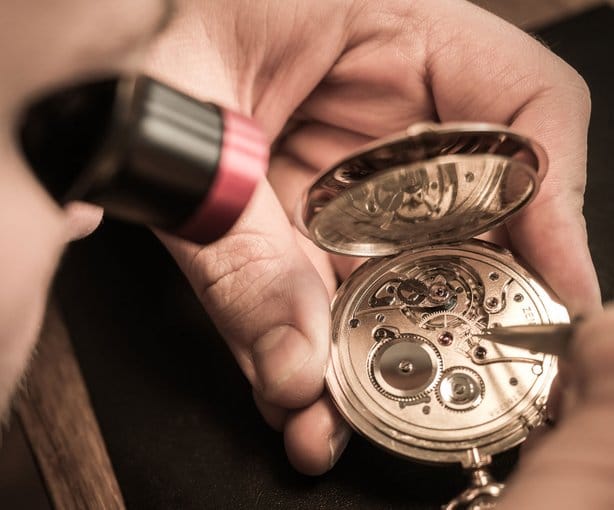 Vid en komplett service så görs en fullständig rengöring av verk, länk och boett. Ny olja/fett appliceras. Klockans gång kontrolleras och justeras. Nya packningar & krona monteras, samt att klockan trycktestas.
